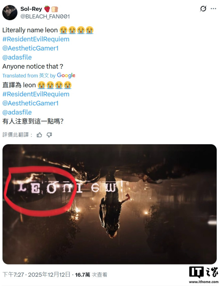 随后X平台用户Sol-Rey和KATHYANHY发现,卡普空在游戏的所有预告片中都暗藏了小细节,如果将片中最后几秒的“Requiem”(安魂曲)字母倒过来看的话,就能找出完美对齐的“LEON”(里昂)字母,只不过当时许多玩家都没注意到这点。